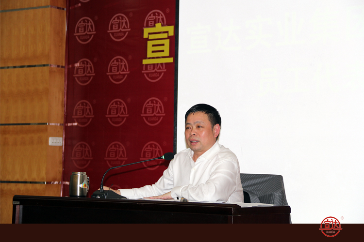 叶际宣首先回顾了宣达集团在2012年度的经营状况,肯定了广大员工在过去一年中为企业发展所做的积极贡献。同时,他提出了企业在2013年度的整体工作思想,即“六个狠抓”:一是狠抓团队建设,二是狠抓科技兴企,三是狠抓产品质量,四是狠抓勤俭节约,五是狠抓市场开拓,六是狠抓品德教育。